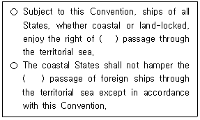 72. 「United Nations Convention on the Law of the Sea(UNCLOS)」에 규정된 내용의 일부이다. ( )에 공통으로 들어가는 것은?