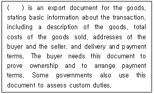 11. 다음 선적서류의 내용에서 ( ) 안에 들어갈 옳은 용어는?