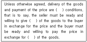 32. 영국물품매매법(Sale of Goods Act, 1979)에서 규정된 계약의 이행(Performance of the Contract)에 관련된 내용이다. ( )안에 들어갈 용어를 순서대로 바르게 나열한 것은?