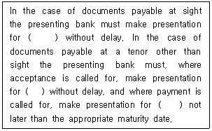 9. 추심에 관한 통일규칙(URC 522) 제6조 '일람출급/인수(Sight/Acceptance)'에 관한 규정이다. ( )안에 들어갈 용어를 순서대로 바르게 나열한 것은?