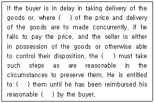 4. 국제물품매매계약에 관한 유엔협약(CISG, 1980) 제85조 '매도인의 보존의무'와 관련된 규정이다. ( ) 안에 들어갈 용어를 순서대로 바르게 나열한 것은?