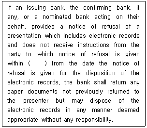 1. 전자적 제시를 위한 UCP추록(eUCP Version 1.1) 제e7조 '거절통지(Notice of Refusal)'이다. ( )에 들어갈 내용으로 옳은 것은?