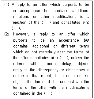 21. 국제물품매매계약에 관한 유엔협약(CISG, 1980) 제19조의 내용이다. ( )에 들어갈 용어를 순서대로 바르게 나열한 것은?
