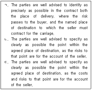 29. IncotermsⓇ 2010 '서문(Introduction)'의 일부이다. ( )에 들어갈 내용을 순서대로 바르게 나열한 것은?