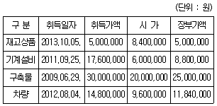 7. (주)대한은 2014. 3. 5.에 폐업하였다. 폐업시 보유자산이 다음과 같을 때 폐업에 따른 부가가치세 과세표준은 얼마인가?