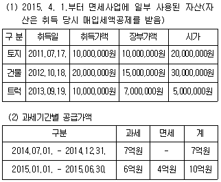 17. 2015. 3. 5. 일반과세자 甲은 면세사업과 과세사업에 공통으로 사용한 트럭을 10,000,000원에 매각하였다. 2015년 1기 과세표준에 포함되는 공급가액은 얼마인가?