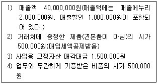 13. 다음은 일반과세자인 사업자 甲의 2016년 제1기 과세기간(1. 1. ~ 6. 30.)에 대한 거래내역이다. 부가가치세 과세표준은 얼마인가? (단, 아래에서 제시한 금액은 부가가치세를 포함하지 않음)