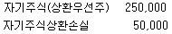 12. (주)관세는 20×1년 1월 1일 상환우선주 1,000주(주당 액면금액 ₩500)를 액면발행하였다. (주)관세는 상환우선주에 대한 상환의무가 없으며, 상환우선주 보유자는 상환청구권이 없다. (주)관세는 기발행한 상환우선주 중 500주를 20×1년 12월 1일에 주당 ₩600에 취득하였다. 이러한 취득에 대한 분개에서 차변에 기록될 계정과목과 금액으로 옳은 것은?