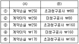 20×2년도의 공사로 인한 계약손익(A)과 미청구공사(또는 초과청구공사)(B)는 각각 얼마인가? (단, 진행률은 발생원가에 기초하여 산정한다.)