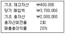 24. 20×1년 말 화재로 인하여 (주)관세의 재고자산이 모두 소실되었다. 다음 자료를 이용하여 기말 재고자산의 장부금액을 추정하면 얼마인가? (단, 화재 이외의 원인으로 인한 재고자산평가손실과 감모손실은 없고, 총자산회전율은 기초 총자산을 기준으로 계산된 것이다.)