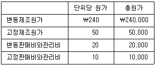 39. (주)관세는 20×4년 초 고객으로부터 축구공 500단위를 단위당 ₩320에 구입하겠다는 특별주문을 받았다. 특별주문을 수락하더라도 특별주문에 대한 변동판매비와관리비는 발생하지 않으며, (주)관세는 현재 충분한 여유생산설비를 보유하고 있다. 축구공 1단위의 정상판매가격은 ₩500이다. (주)관세의 20×3년 1,000단위 판매에 따른 자료는 다음과 같다.