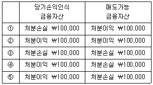 15. (주)관세는 20×1년 초 A주식 1,000주를 주당 ₩2,000에 취득하였으며, 20×1년 말 현재 A주식의 주당 공정가치는 ₩2,400이다. 20×2년에 보유중인 A주식 500주를 주당 ₩2,200에 처분하였다. (주)관세가 A주식을 당기손익인식금융자산으로 분류한 경우와 매도가능금융자산으로 분류한 경우의 처분손익은 각각 얼마인가?