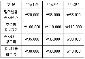 26. (주)관세는 20×1년 초에 (주)세관과 공장건설계약을 체결하였다. 총공사계약금액은 ₩100,000이며, 공사가 완성된 20×3년 말까지 건설공사와 관련된 자료는 다음과 같다. (주)관세는 진행기준을 적용하여 수익을 인식하며, 공사진행률은 누적발생공사원가에 기초하여 측정한다. 20×2년에 인식해야 할 공사손익은 얼마인가?