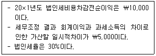 27. (주)관세의 법인세와 관련된 자료가 다음과 같을 때, 20×1년 말 이연법인세자산(또는 이연법인세부채)은 얼마인가? (단, 20×1년 초에는 이연법인세자산과 이연법인세부채가 존재하지 않았다.)