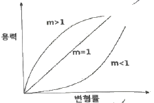 34. 압축시험의 응력-변형률 선도에서 m<1일 때 적용되는 것은? (단, m은 가공경화지수이다.)