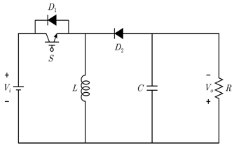 10. 그림과 같은 컨버터가 정상상태로 동작하고 있을 때, 전압전달비(Vo/Vi)를 듀티비 D로 나타내면? (단, 모든 소자는 이상적으로 동작하고 인덕터의 전류는 연속이다)