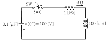 17. 그림의 회로에서 스위치 SW를 t=0에서 닫았을 때, 전류 i(t)[A]의 자연 응답 특성은?