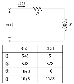 6. 그림의 직렬회로에서 저항 R[Ω]과 리액턴스 X[Ω]는?(단, v(t)=40sin(120πt)[V]이고, i(t)=2sin(120πt-30°)[A]이다)