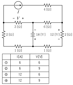 7. 그림의 회로에서 전류 I[A]와 전압 V[V]는?