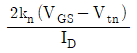일 때, 포화영역에서 N 채널 MOSFET의 소신호 등가회로의 전달컨덕턴스(transconductance) gm은? (단, kn은 전달컨덕턴스 파라미터, Vtn은 문턱전압이다.)