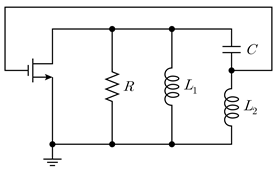 13. 다음 회로에서 발진 주파수 f[Hz]는? (단, 발진을 위한 이득조건을 만족하고, L1과 L2의 상호 인덕턴스는 무시한다)