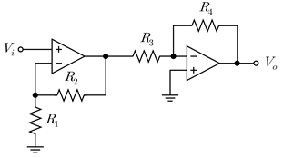 18. 다음 연산 증폭기 회로의 전압 이득 는? (단, 모든 회로 소자는 이상적이다)