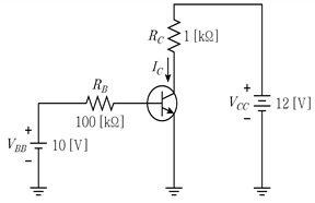 1. 다음 BJT 증폭회로에서 컬렉터 전류 IC[mA]는? (단, 다이오드의 순방향 전압강하는 0.7[V], 직류 전류이득 βDC=100이고, 저항성분은 무시한다)