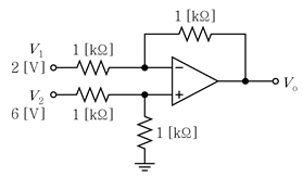 15. 다음 연산증폭기 회로에서 출력전압 Vo[V]는? (단, 연산증폭기는 이상적이다)