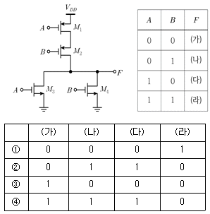 16. 다음 논리게이트 회로의 진리표에서 입력 A, B에 대한 출력 F로 옳은 것은?
