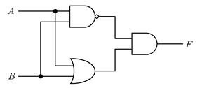 2. 다음 논리 회로에서 출력 F의 논리식은?