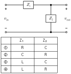 4. 다음 회로를 고역통과필터로 구성하기 위한 소자 Z1, Z2는?