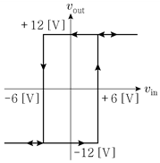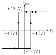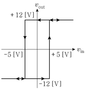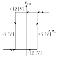 7. 다음 슈미트 트리거(Schmitt trigger) 회로의 입출력 전달특성 그래프로 옳은 것은? (단, 양의 포화전압 +12[V], 음의 포화전압 -12[V], 연산증폭기는 이상적이다)