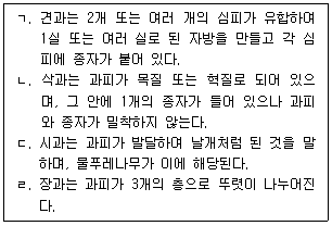 15. 활엽수종의 열매 분류에 대한 설명으로 옳은 것만을 모두 고르면?