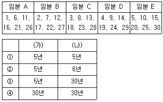 19. 다음 순환택벌 모식도에 적용된 회귀년(가)과 윤벌기(나)를 바르게 연결한 것은? (단, 모식도의 숫자는 수령을 의미한다)