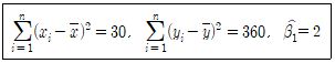 11. 다음은 자료 (xi, yi)(i = 1,2,…,n)에 단순선형회귀모형 yi = β0 + β1xi + εi를 최소제곱법으로 적합하여 얻은 결과이다. 이 단순선형회귀모형의 잔차제곱합(SSE)은? (단,