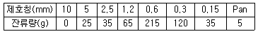51. 전체 500g의 잔골재를 체분석한 결과가 아래 표와 같을 때 조립률은?