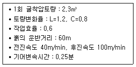 35. 아래 표와 같은 조건에서 불도저 운전 1시간당의 작업량(본바닥의 토량)은?