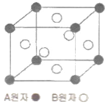 29. [그림]과 같이 면심입방격자(FCC)로 된 A원자와 B원자의 규칙격자 원자배열에서 A와 B의 조성을 나타내는 것은?