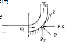 45. 유량Q=0.08m3/sec이고 관의 단면적 A=250cm2으로 일정할 때 물이 그림과 같이 90°굽은 관을 따라 흐른다면 이 벽면이 받는 힘P는?
