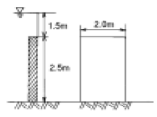 57. 그림과 같이 2.5m x 2.0m의 수직판이 수면으로부터 1.5m아래 세워져 있다. 이 판에 작용하는 전수압은?