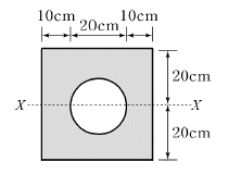 6. 정사각형의 중앙에 지름 20cm의 원이 있는 그림과 같은 도형에서 x축에 대한 단면2차모멘트를 구한 값은?