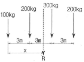 10. 다음 그림에서 힘들의 합력 R의 위치(x)는 몇 m인가?