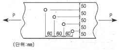 67. 아래 그림과 같은 강판에서 순폭은? (단, 강판에서 의 구멍 지름(d)은 25mm이다.)