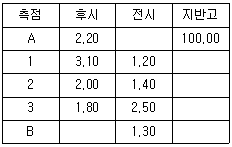 37. 다음의 수준측량 야장에서 B점의 지반고를 구하면?