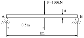 16. 그림과 같이 단순화한 길이 1m의 차축 중심에 집중하중 100kN이 작용하고, 100rpm으로 400kW의 동력을 전달할 때 필요한 차축의 지름은 최소 몇 cm인가? (단, 축의 허용 굽힘 응력은 85MPa로 한다.)