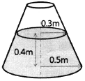 57. 위가 열린 원뿔형 용기에 그림과 같이 물이 채워져 있을 때 아래 면에 작용하는 정수압은 약 몇 Pa인가? (단, 물이 채워진 공간의 높이는 0.4 m, 윗면 반지름은 0.3 m, 아래면 반지름은 0.5 m이다.)
