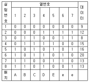 이다.20. 교호작용이 없는 경우의 2수준의 L8(27) 직교배열표를 사용하여 주효과 C를 구하면 얼마인가?