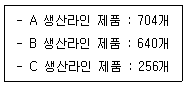 23. 검사 로트의 크기는 1600개이고, 이것을 생산라인별로 분류한 자료가 다음과 같다. 150개의 시료를 층별비례 샘플링으로 뽑고자 할 때, B 생산라인에서는 몇 개를 뽑아야 하는지 고르시오.