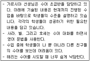 36. 수어지도 전략 부분에서 보기에서 제시하는 글 내용에 해당하는 것은?