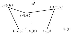 4. 다음과 같은 도로계획면을 만들고자 한다. 각 점의 좌표를 이용하여 단면의 넓이를 구하면 얼마인가?